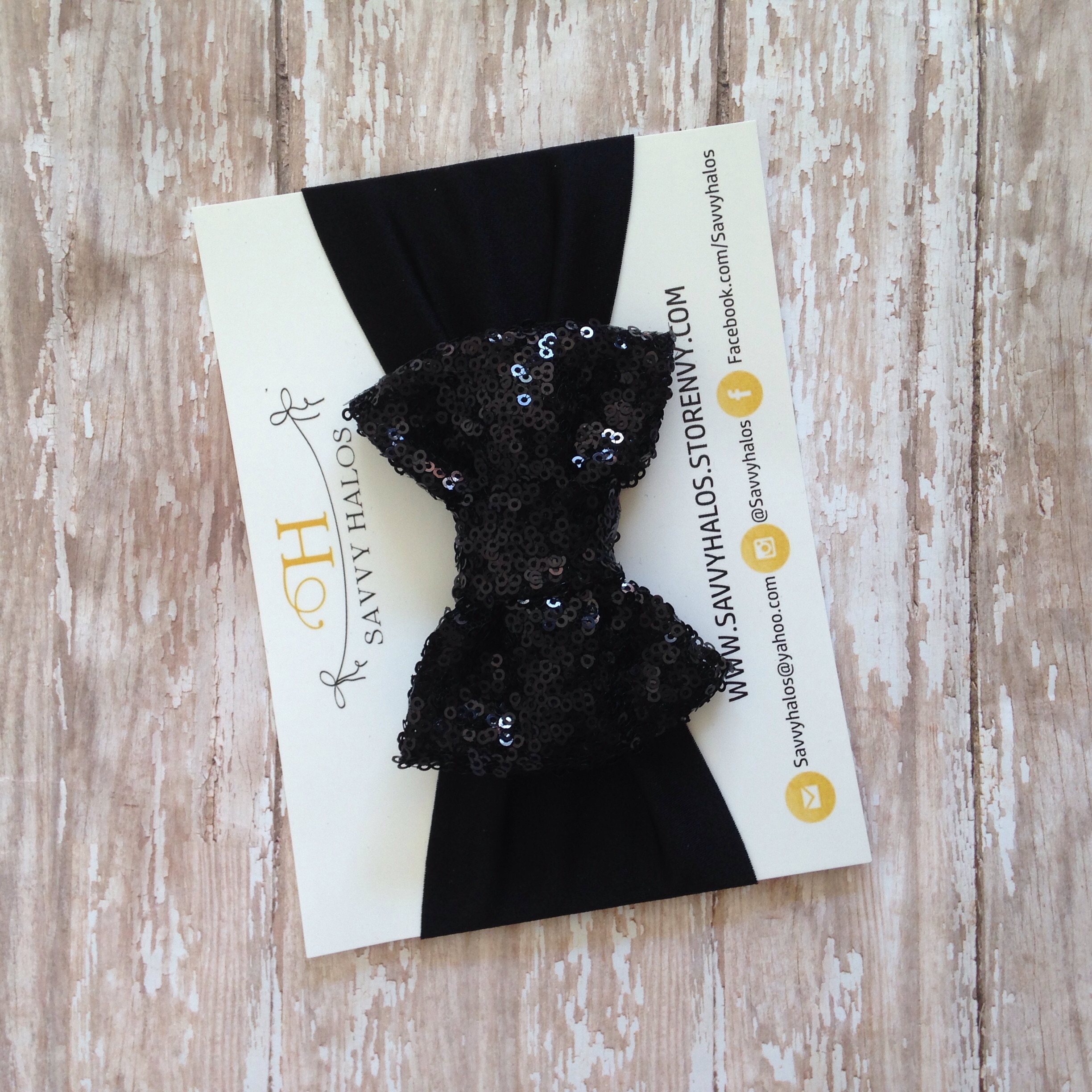 Bows are 3" and bands are raw edge and adjustable in width so you can choose what size works best for you. Extremely soft and stretchy.